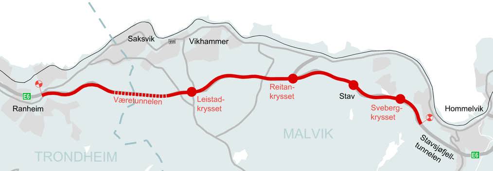 - E6 Ranheim-Sveberg er del 1 av prosjektet Ranheim-Værnes