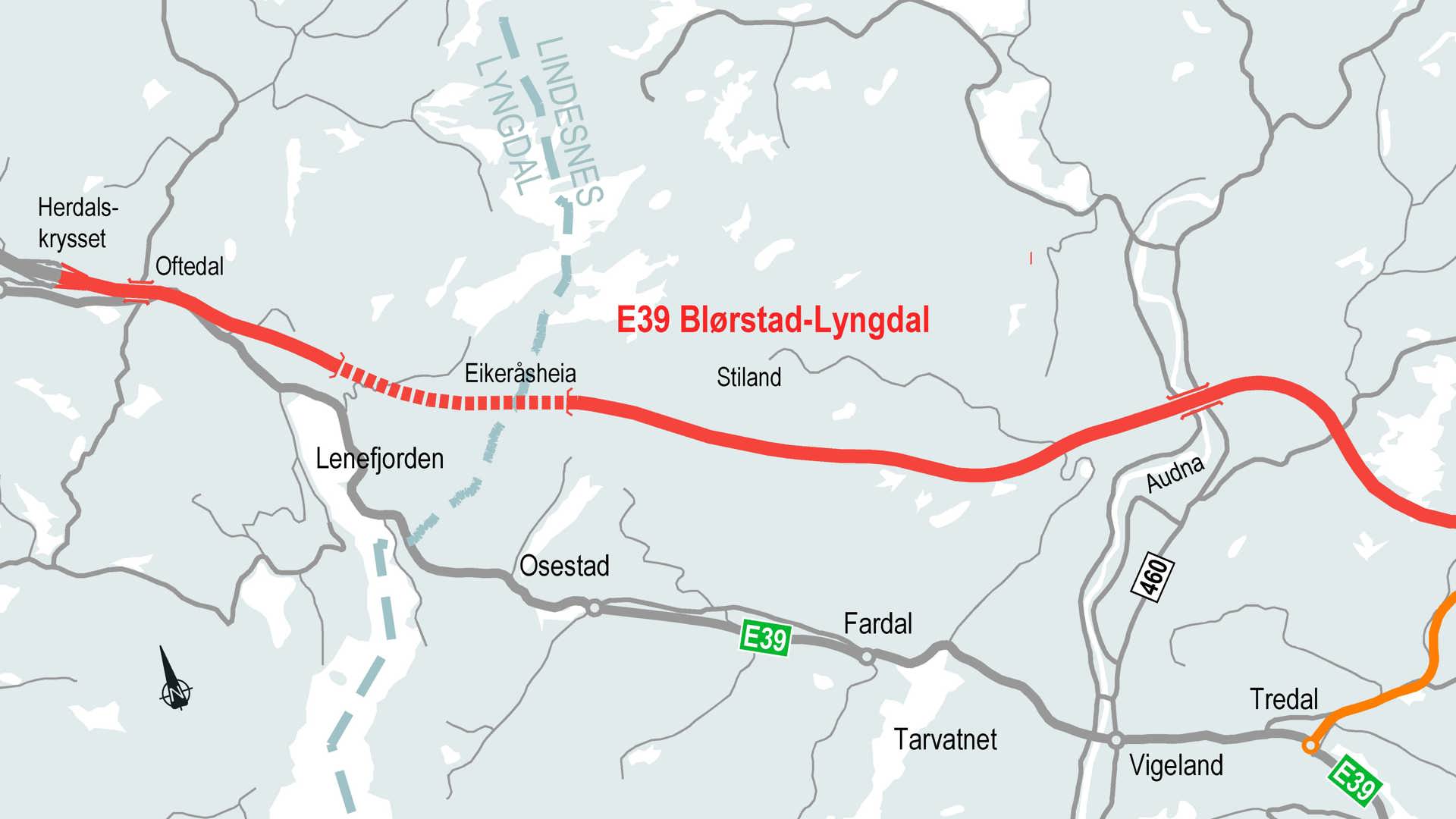 Lyser ut konkurranse for byggingen av E39 Blørstad–Lyngdal