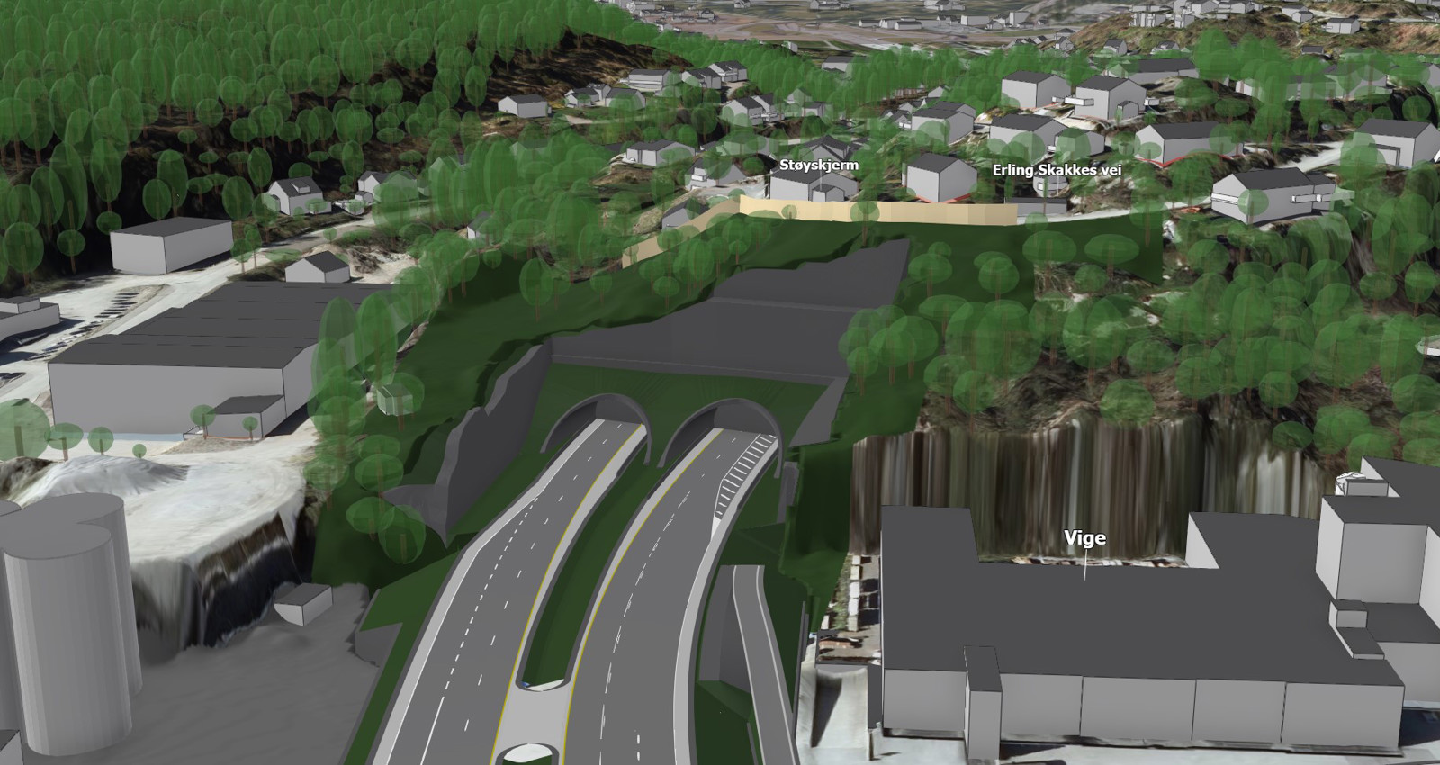 - Hele strekningen mellom kryssene går i tunnel, med angrepspunkter ved Vige og Grauthelleren.