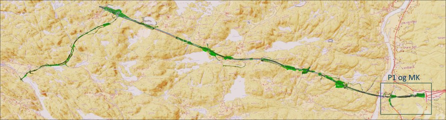 Vestre påhugg Vråheiatunnelen til prosjektgrense Blørstad