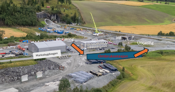 Ombruksstasjonen er plassert på riggområdet på Leistad, vis a vis anleggskontoret i Markabygdvegen 1142.