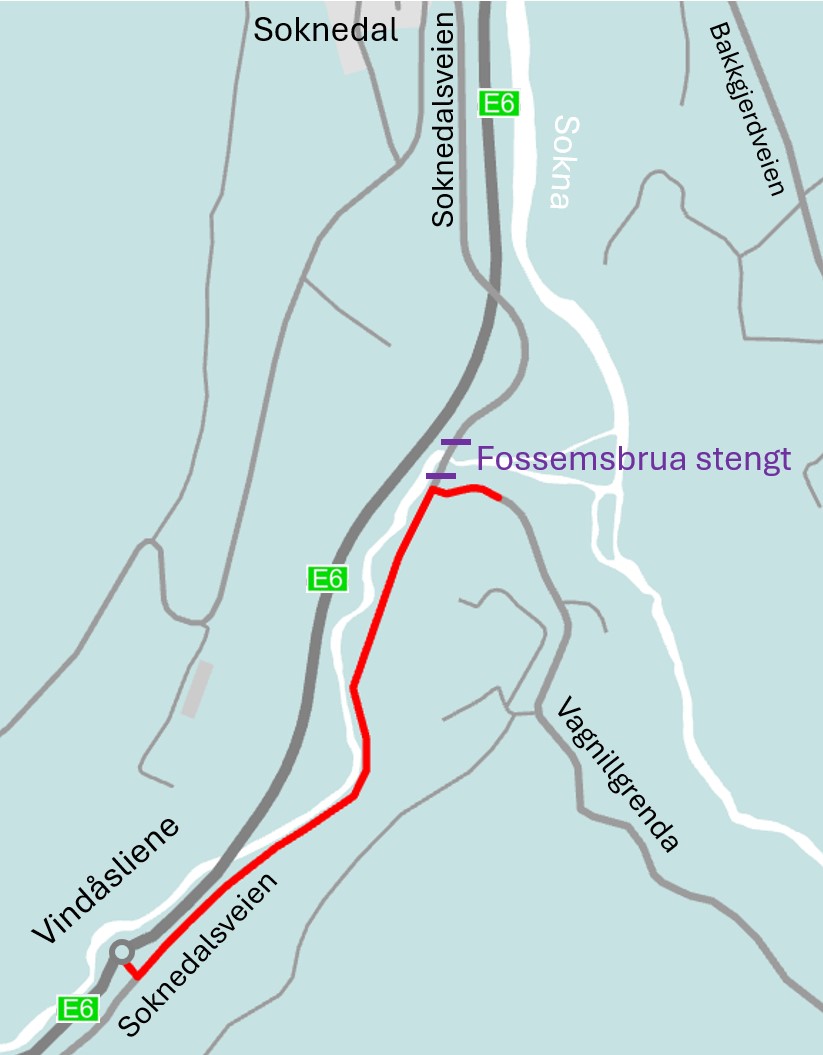 Fossemsbrua stenges fra kl. 09:00 mandag 19.01.2026 og fram til høsten 2026.