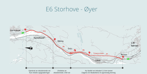 Delstrekningen Storhove-Øyer blir nær ti kilometer lang og inkluderer blant annet en 2,8 kilometer lang toløpstunnel og cirka fem kilometer med utvidelse og gjenbruk av eksisterende vei.