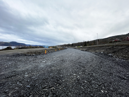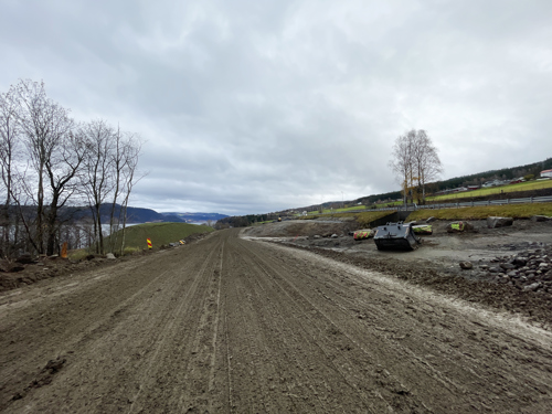En anleggsvei sikrer adkomst til prosjektet fra nedsiden av det nye nordgående løpet av E6. Foto: AF Gruppen