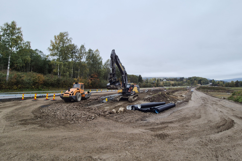 Grunnarbeidet til det nye nordgående løpet til E6 mellom Roterud og Strandengen er i gang. Foto: AF Gruppen